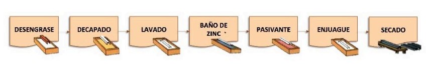 El proceso de zincado electrolítico, consiste en la limpieza química o decapado para eliminar los agentes corrosivos para luego pasar al zincado electrolítico en el que se obtiene un recubrimiento de zinc de hasta 30 micras, la cual, genera mayor protección anticorrosiva al metal.